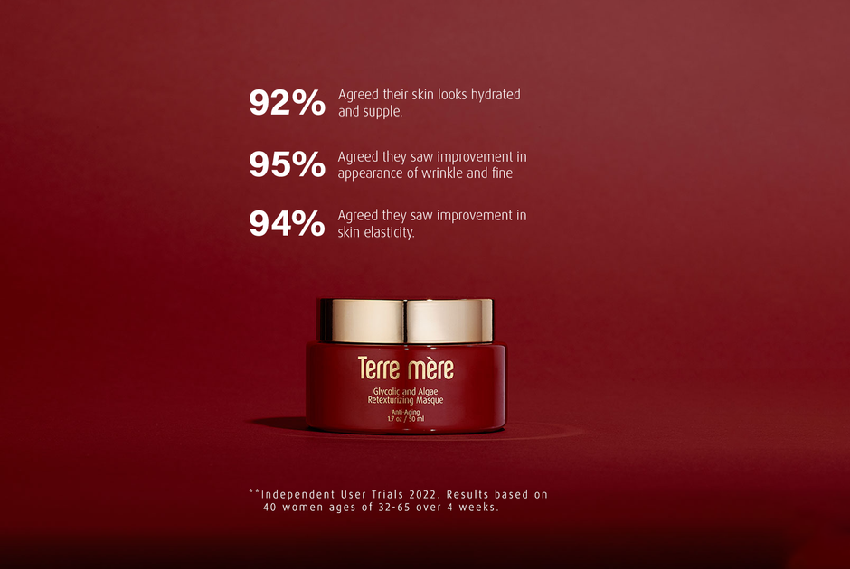 Refine your skin texture in minutes with this potent resurfacing masque. Glycolic, Lactic, and Malic acid steal the show by unclogging pores, lightening pigmentation, and sloughing off dead skin, oils, and excess sebum that can weigh your complexion down. These hardworking acids also tighten the look of pores and increase radiance with each use. Do-it-all ingredient Niacinamide smooths the skin, reduces redness, treats sun damage, and helps your skin retain moisture and bounce. Algae, a gift from the natural world, nourishes, protects, and detoxifies for your softest skin yet. Organic Rosehip Seed and Evening Primrose balance the masque’s exfoliating effect with deep hydration. Finally, peptides and plant stem cells soothe and target wrinkles. And best of all? No redness, burning, or downtime, only better skin with every use.
